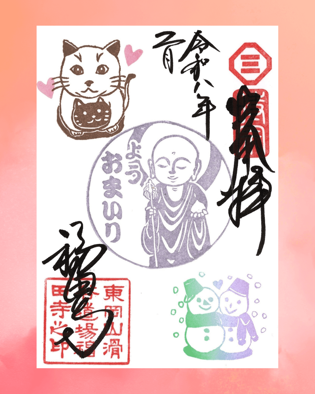 今年の片面は、愛らしいお地蔵様とともに、ダジャレで楽しい御朱印にしていきたいと思います。