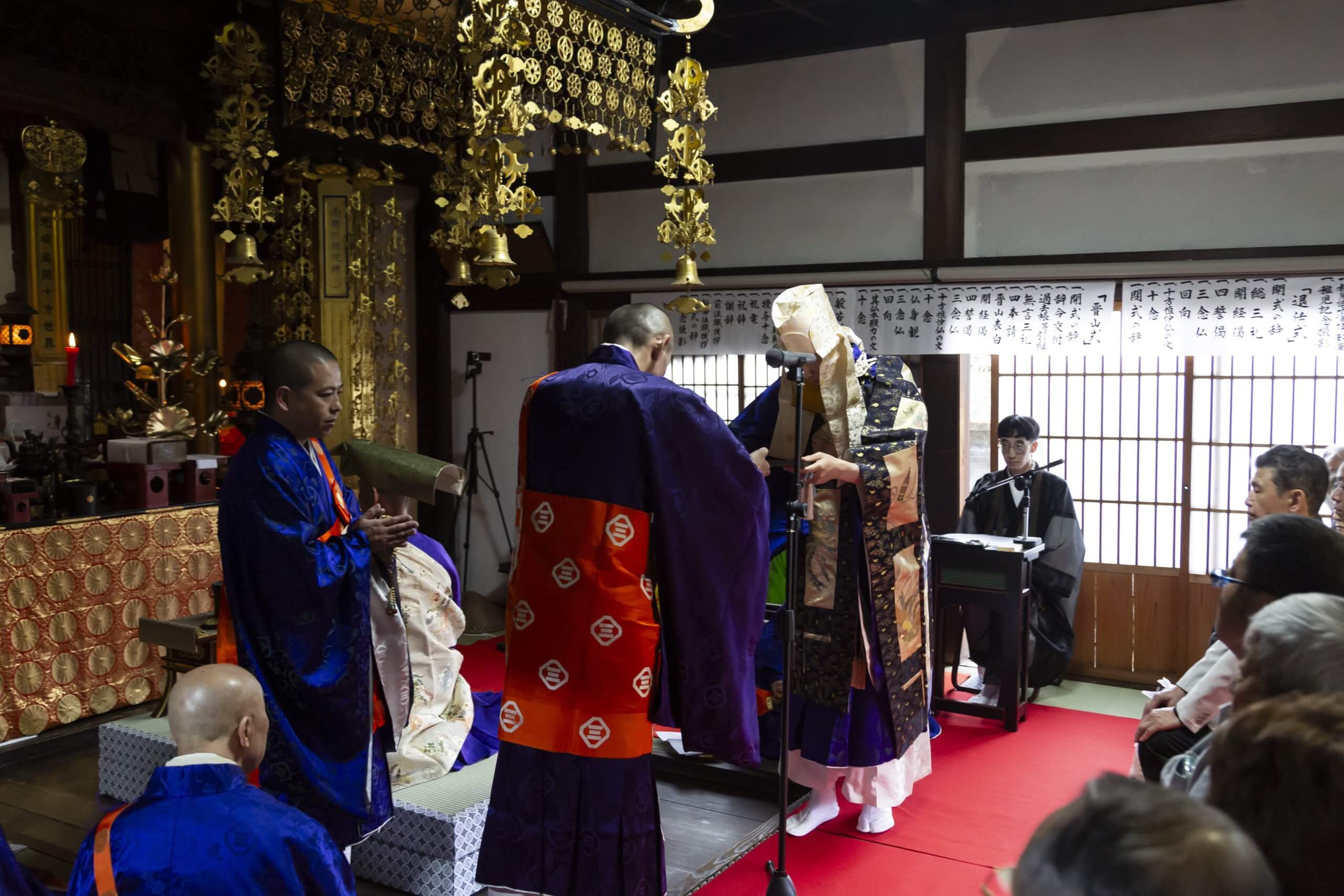無量光仏とは、無限の生命をもつ阿弥陀如来の徳を表し、十二道具の第一には引入(飯碗)が当てられました。
